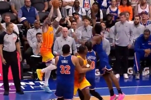 秀起来了!三球金鸡独立虚晃传球 格威空中不停球助迪亚巴特吃饼