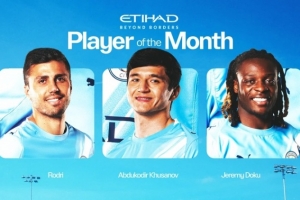 曼城公布3月份最佳球员候选:罗德里、胡桑诺夫和多库