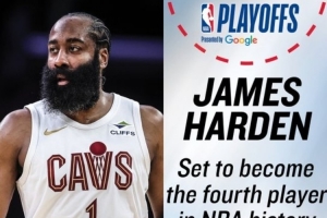 哈登NBA生涯前17个赛季均打进季后赛,历史第四位做到的球员,比肩卡尔·马龙、约翰·斯托克顿、托尼·帕克。