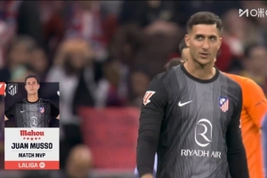 体育资讯4月5日讯 西甲第30轮焦点战,马竞主场1-2不敌巴萨。马竞门将穆索赛后被评为本场比赛最佳球员。